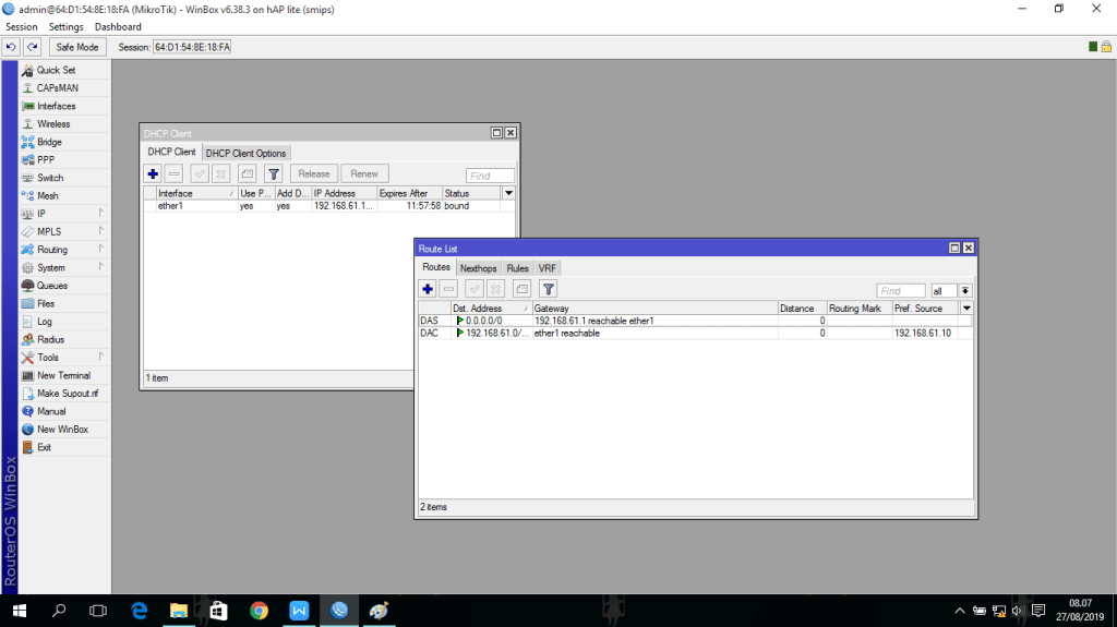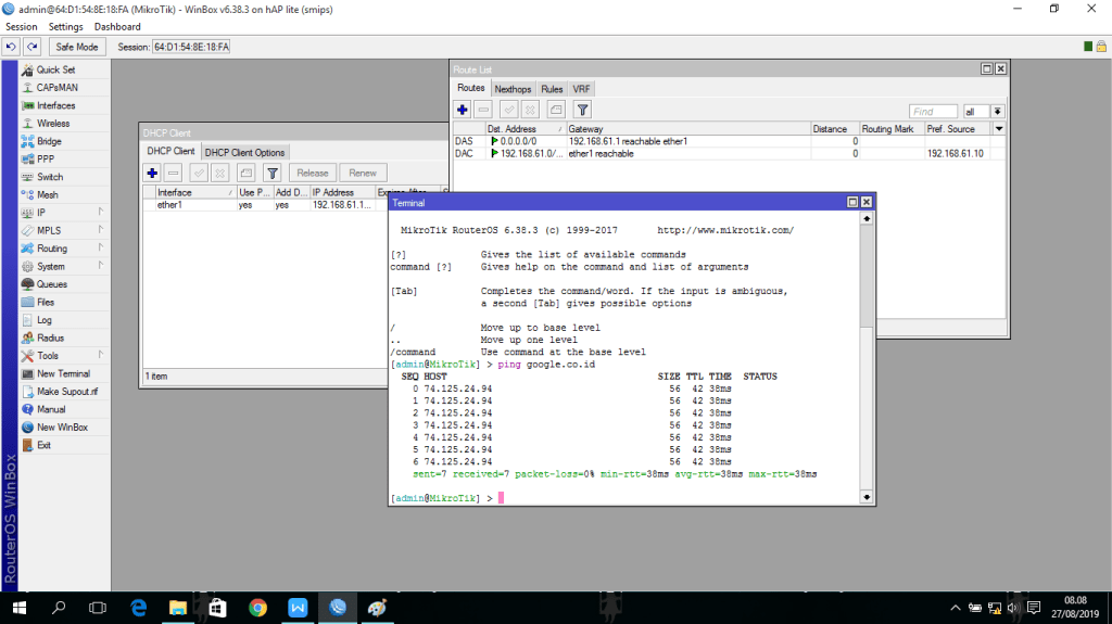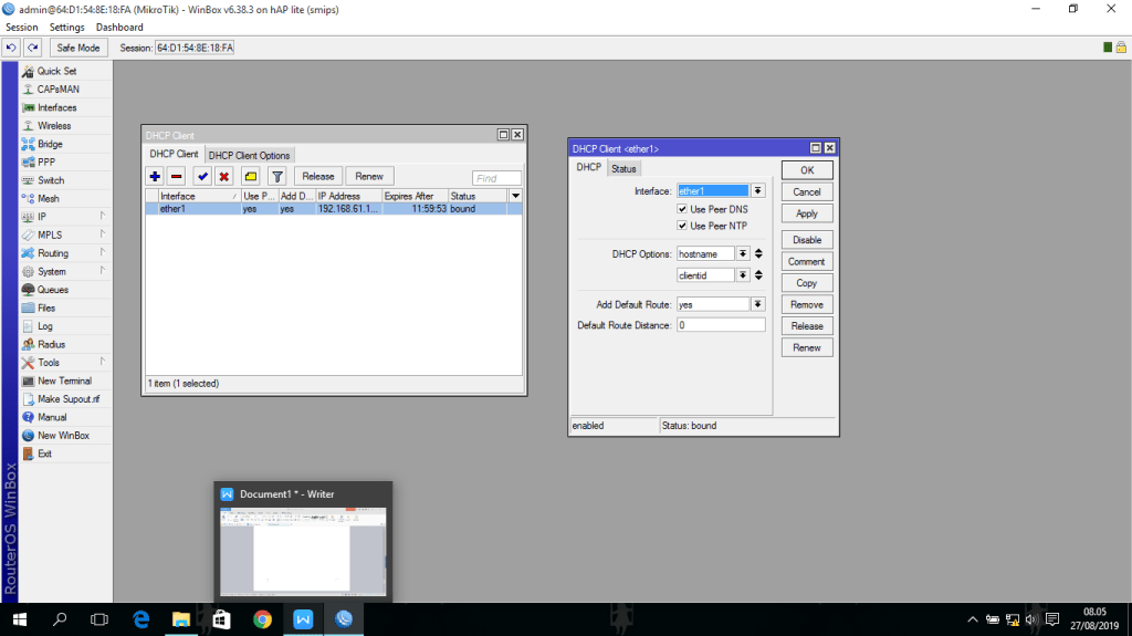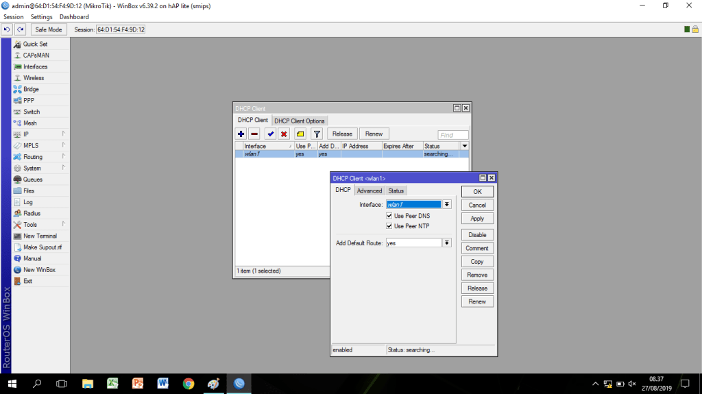 1. Buat DHCP Client terlebih dahulu dengan cara :