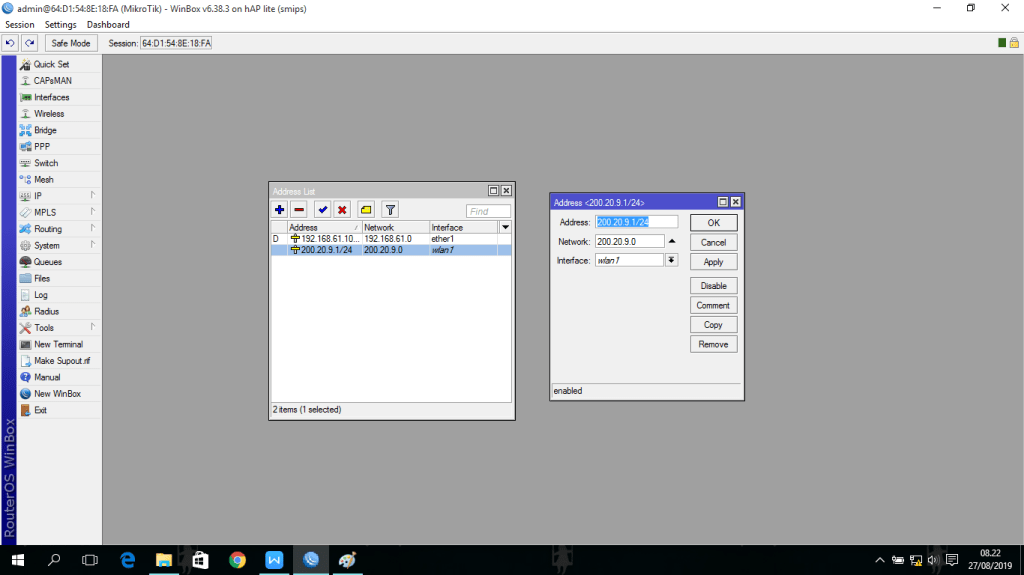 2. Buat IP Addresses sebagai wlan 1 seperti gambar dibawah ini