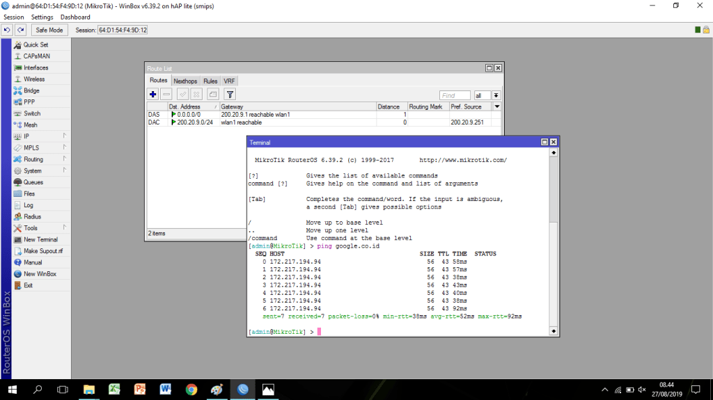 4. Apabila sudah dicek diroutes lalu di ping google.co.id di new terminal