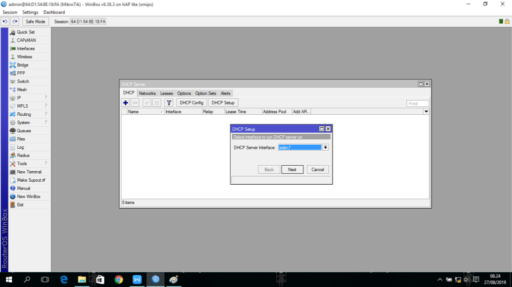 Klik IP -> klik DHCP Server -> klik DHCP Setup ->pilih wlan 1