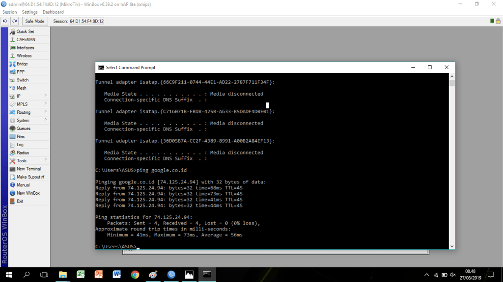 8. Apabila konfigurasi sudah selesai maka di cek di cmd