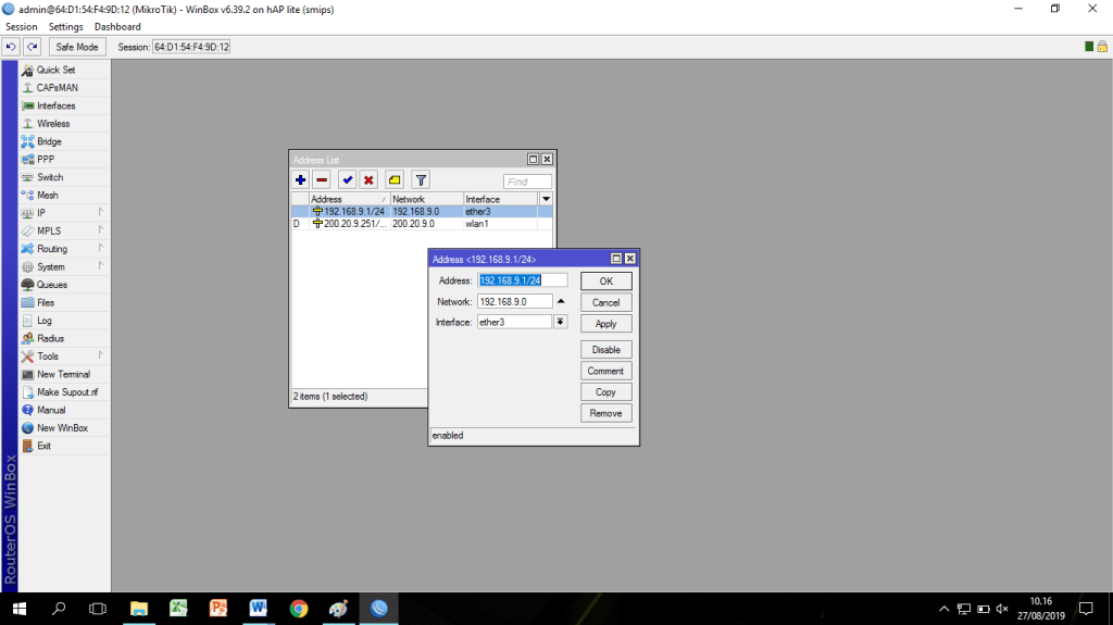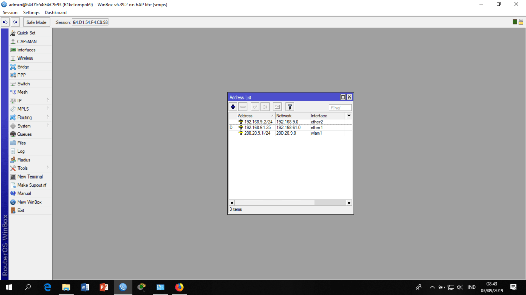 5. Buat IP Addresses sebagai ether 3 seperti gambar dibawah ini